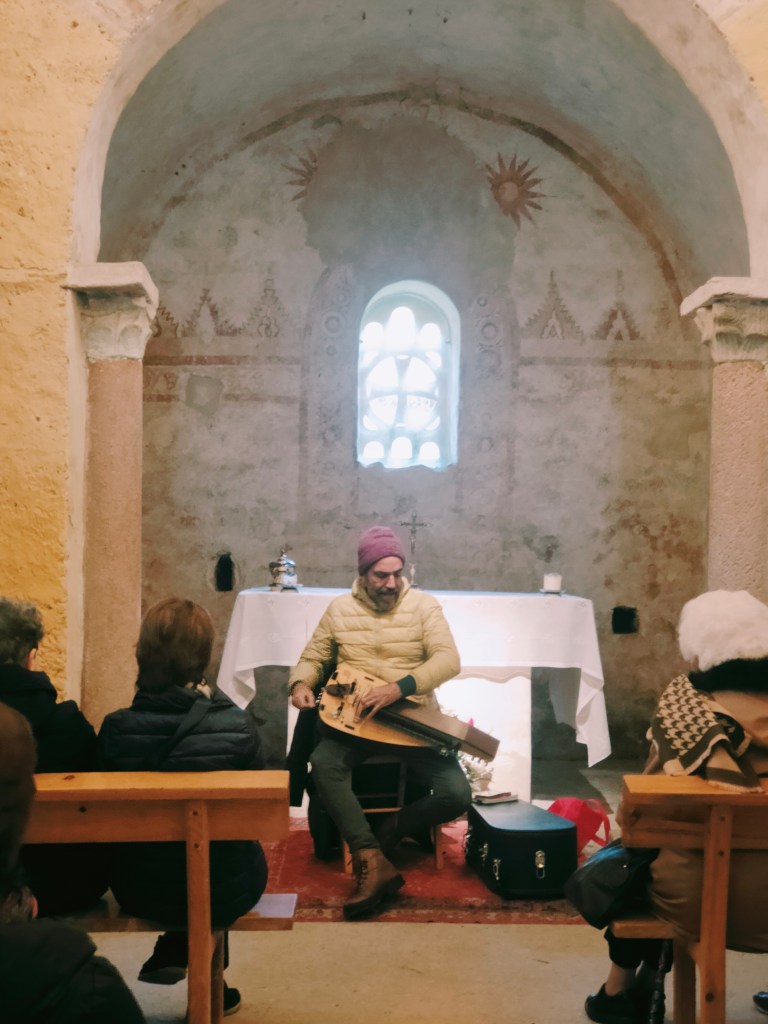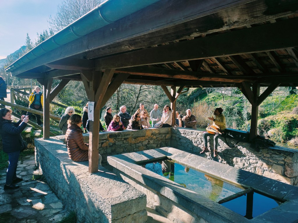 Al terminar la visita disfrutamos de una actividad titulada «Arte, vida y cultura en la Edad Media«, un itinerario musicalizado con zanfona —instrumento de cuerda parecido a la viola, típico de los trovadores medievales— en la iglesia de Santo Adriano de Tuñón y por el cercano pueblo de Villanueva, que incluyó una explicación sobre las excavaciones arqueológicas realizadas en torno al campesinado medieval y la iglesia románica de San Romano.