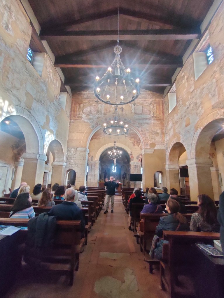 En esta ocasión la explicación corrió a cargo del Dr. Francisco Avelino Aguado Blázquez, experto en una de las iglesias más emblemáticas de arte asturiano, San Julián de los Prados, el mejor espejo de Alfonso II el Casto, dedicada el 6 de agosto del 808 a los santos San Julián y Santa Basilisa. Iglesia palatina, castrense y conciliar. Templo regio que expresa tanto la ideología como la teología de Alfonso II el Casto.