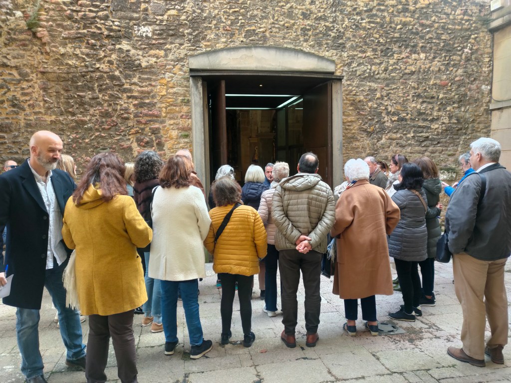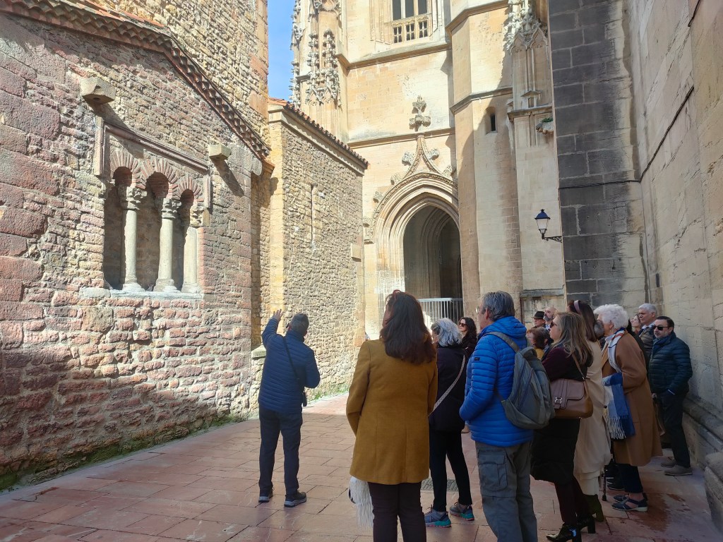Al terminar la visita al interior de la iglesia se detuvieron en el testero original del templo prerrománico del siglo IX, para pasearse después por el Oviedo Redondo siguiendo el recorrido de la muralla defensiva construida por Alfonso II el Casto, deteniéndose en lo que fueron cada una de sus puertas originales y situándonos en el Oviedo de doce siglos atrás.