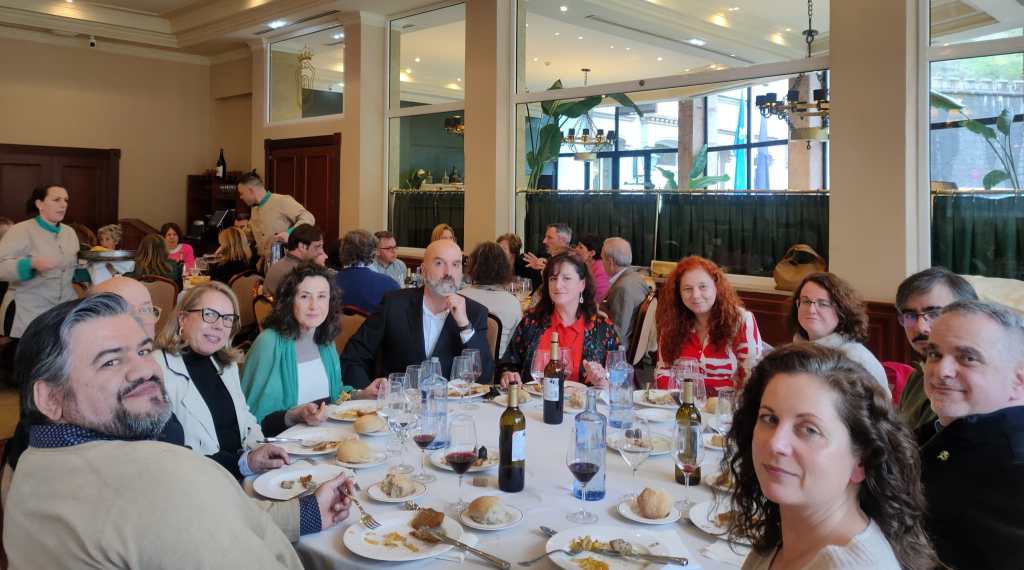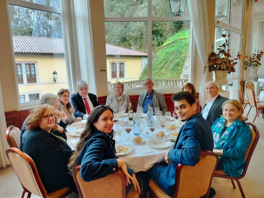Por la tarde, tras la comida de celebración en el Gran Hotel Pelayo, tuvo lugar una sesión de trabajo titulada “Vestigios en los territorios: pasado de un reino proyectado en el futuro”, donde cada embajador hablaba de los elementos más importantes del Reino de Asturias en su territorio. Además, dos socios colaboradores de AARA, Julio Ruíz y Pablo Viejo hablaron, de la aportación de la imagen 3D, los hologramas y la IA para ahondar en el conocimiento de esos dos siglos, sus treces reyes y los territorios que configuraron el reino instaurado por Pelayo.