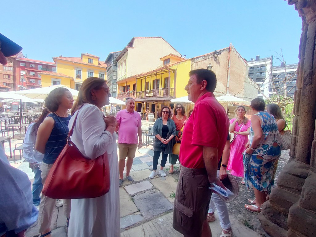 El último domingo de junio asociados de Amigos del Reino Astur, en su mayoría de Oviedo y Gijón, se dieron cita en la plaza de Pedro Menéndez para iniciar un paseo guiado por el Avilés medieval. Lo hicieron de la mano del economista, pero muy versado en la historia en general y de manera particular de Avilés, Felipe Muñoz, que dejó patente el rico pasado medieval de la villa del adelantado de la Florida.