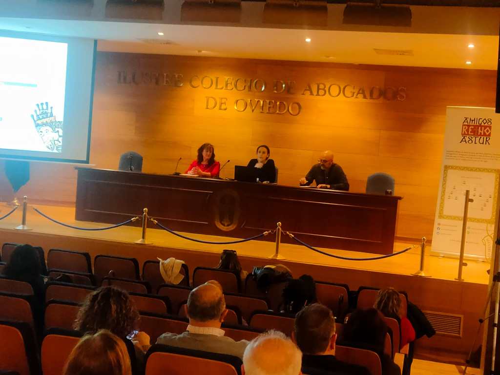 además, estos encuentros tienen lugar en el Colegio de Abogados de Oviedo, que colabora con la asociación. Nos hace especial ilusión que el Colegio esté situado en las ruinas del palacio de Alfonso III el Magno y encontrarnos en plano corazón del Oviedo construido por la monarquía asturiana.