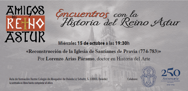 Leer más: ENCUENTROS CON LA HISTORIAEste miércoles 15 de octubre de 2025 “Encuentro con la Historia del Reino”, con «Reconstrucción de la Iglesia de Santianes de Pravia (774-783)», a cargo de Lorenzo Arias Páramo, doctor en Historia del Arte.
